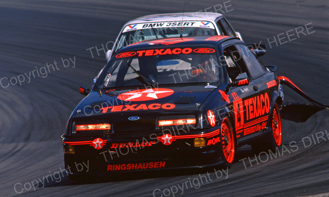 Kampfspuren am Heck des Ford Sierra von Klaus Niedzwiedz zeugen vom schlechten Bremsverhalten der nachfolgenden Konkurrenten.