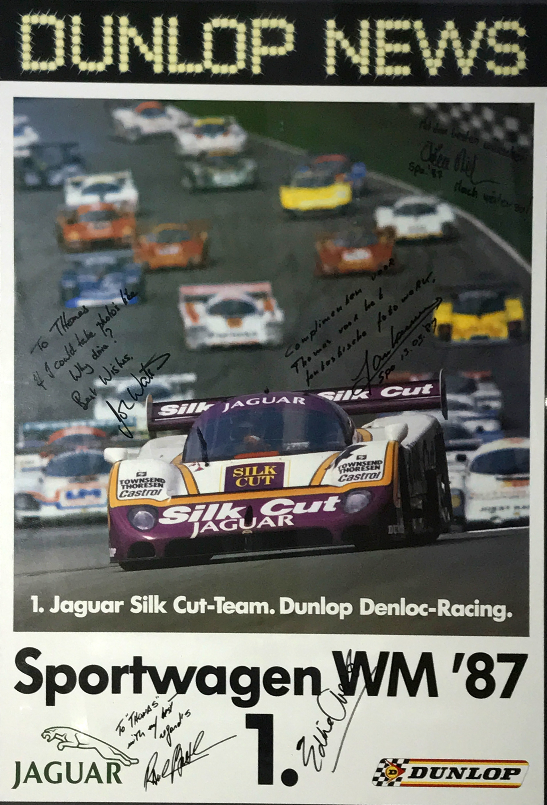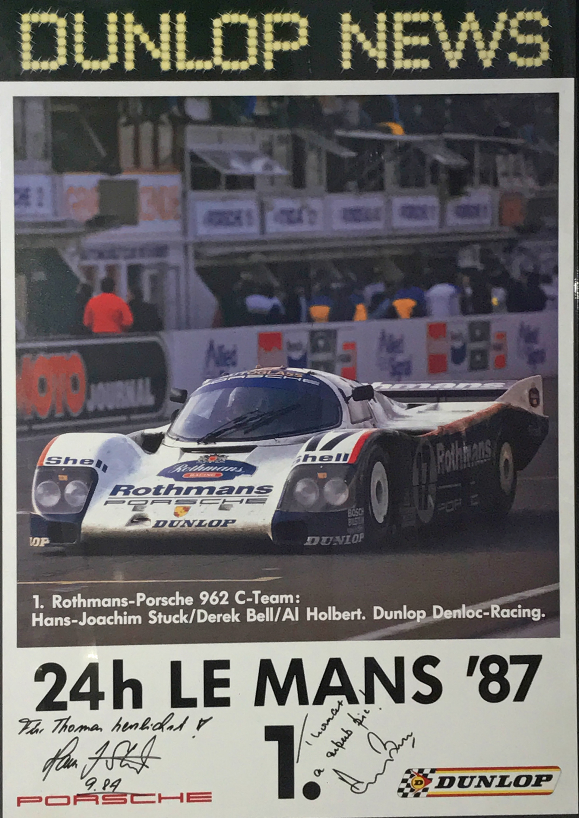 Dunlop Poster mit Autogramm: Hans-Joachim Stuck; Derek Bell.