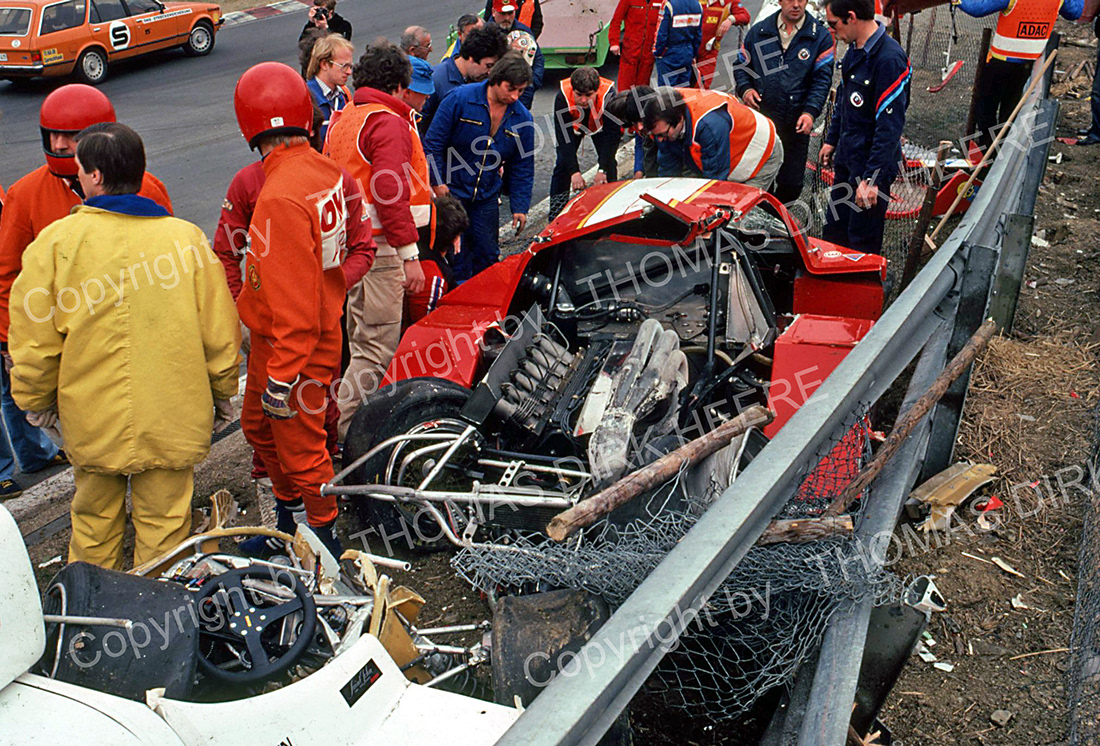 Interserie-300km Rennen 1982 Nürburgring. Schnelle Hilfe nach schwerem Unfall.